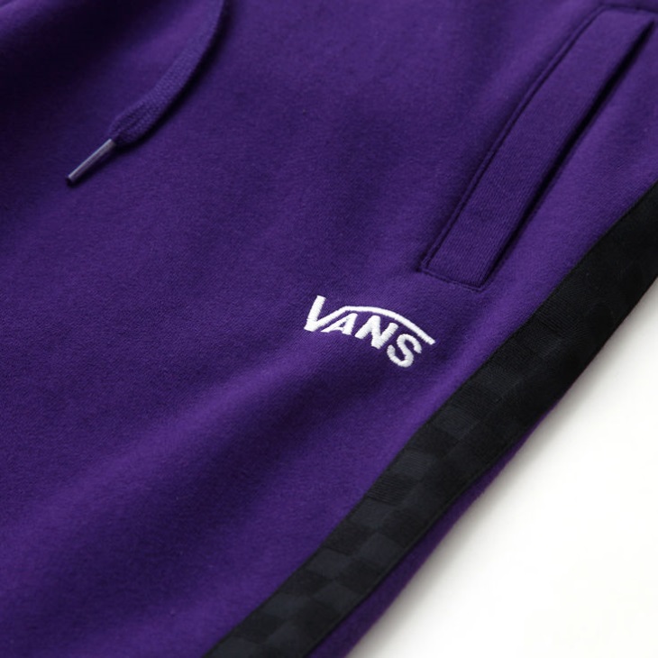 The Tape Off Retro Pant is a 320gsm retro fleece pant made of 80% cotton 20% polyester cvc fleece. It features embordiery logo on front and checkerboard taping along sideseam. The pants length is 29 1/2" inseam.
