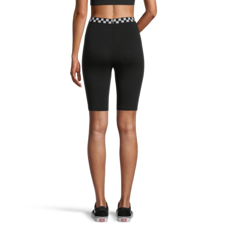 The Checked Out Bike Short is 95% cotton and 5% elastane. Model is 5 feet 9 inches tall, has a 23-inch waist, and is wearing a size Small.