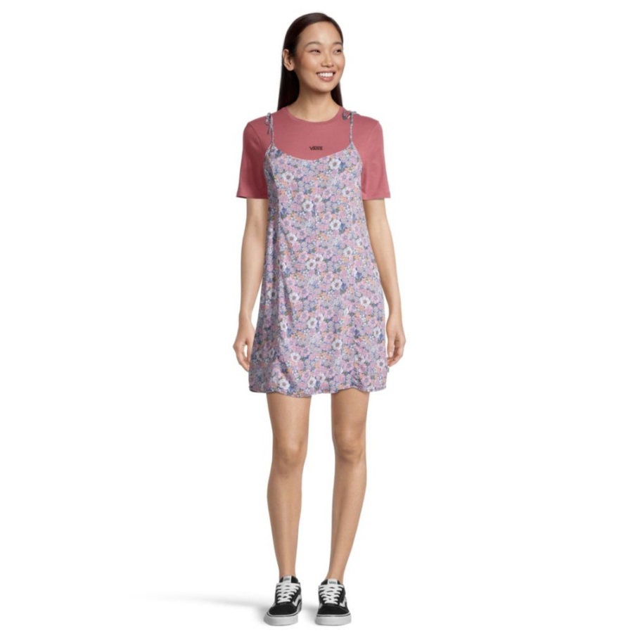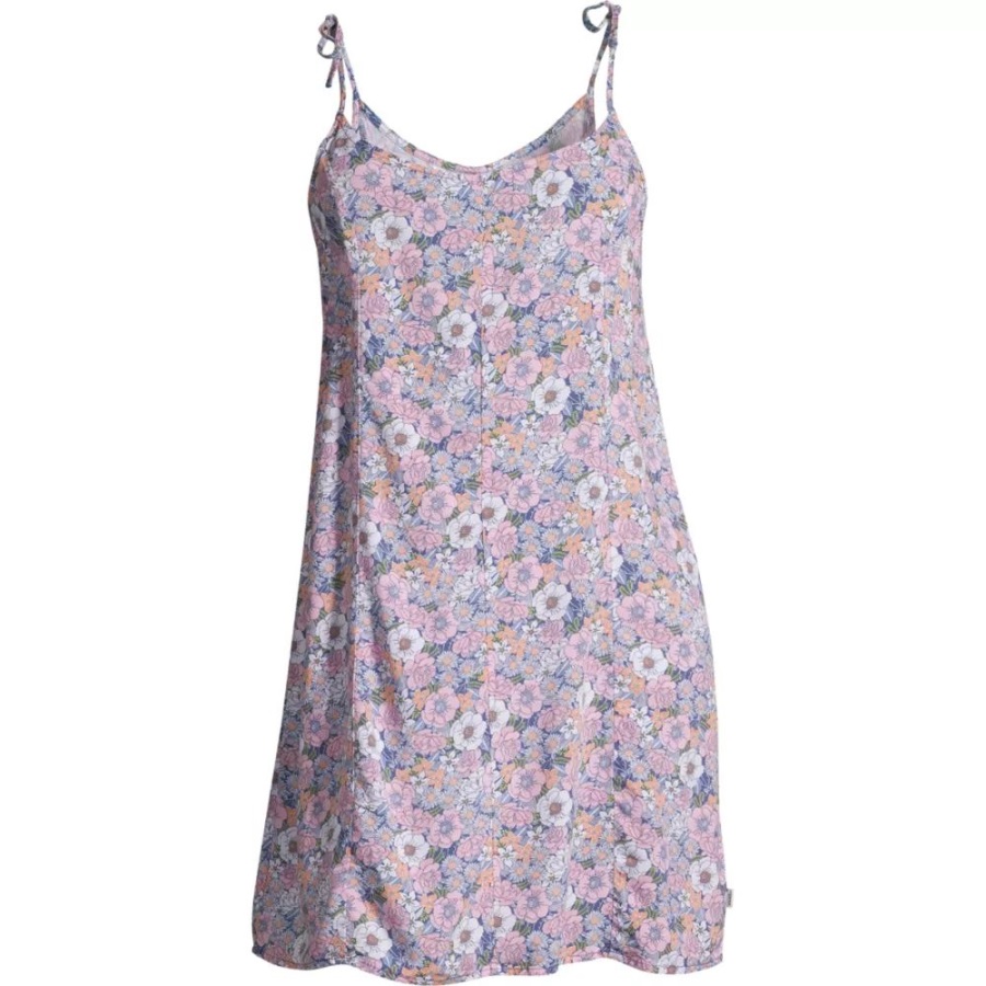 The Women's Retro Floral is a 100% Viscose Allover print woven A-line fit dress with spaghetti strap tie detail at shoulder and princess seam.