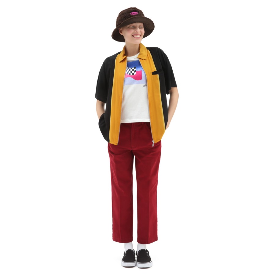 Pushing the boundaries and thinking differently is nothing new to Vans surfers Alex Knost (from Costa Mesa, California) and Lee-Ann Curren (from Biarritz, France). Whether in the water or out, they know that true self-expression means being unapologetically yourself. In this second season of their genderless head-to-toe collection from Vans, Alex and Lee-Ann worked together to integrate new colors and materials, driving a unique approach to progression with product and inclusivity.Their "outside-the-lines" way of thinking, both on a wave and off, has come to life in the new Vans X Curren X Knost Shirt. Featuring a vertical stripe print inspired by 70s interiors and automotive design, this short sleeve shirt highlights a classic aesthetic with retro flair. Other notable features include the contrasting collar, front zip closure with a novelty logo zipper pull, and a comfortable relaxed fit. Because for Alex and Lee-Ann, it's about more than creating a collection that people look good wearing-it is about feeling good when you are wearing it.