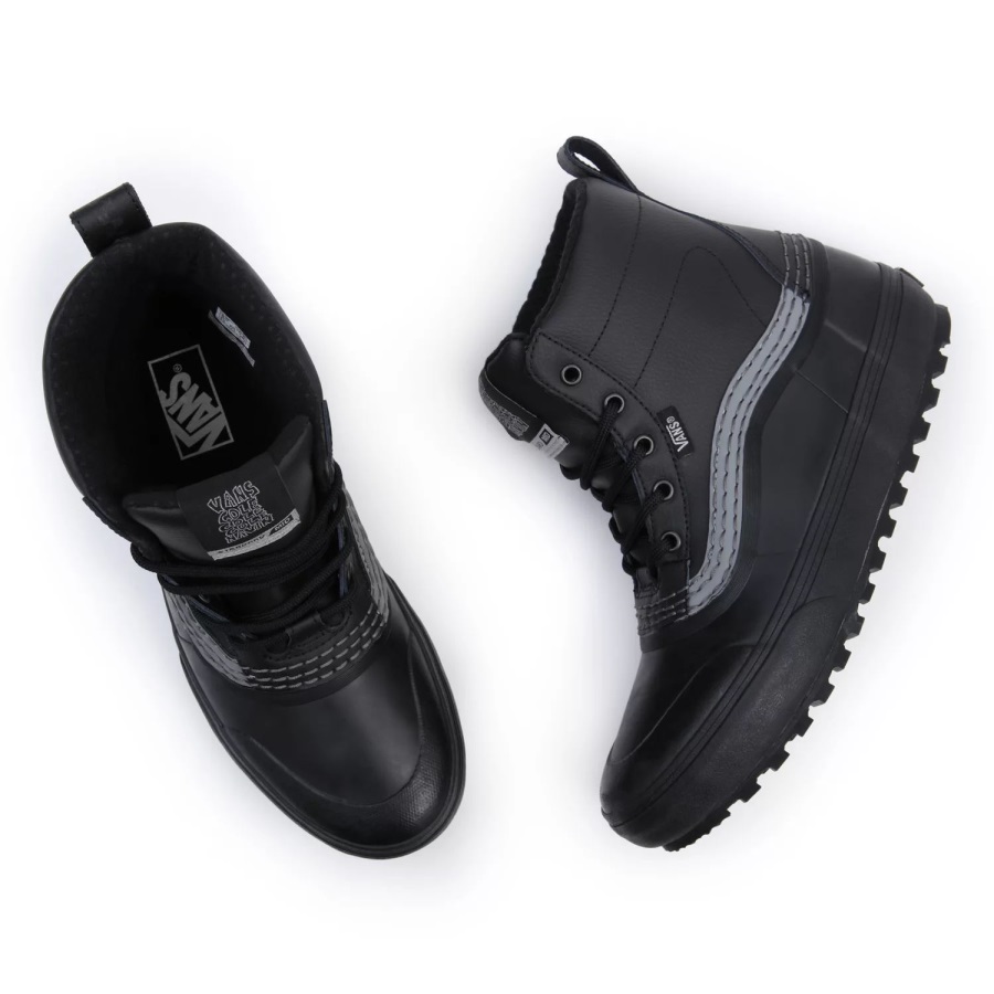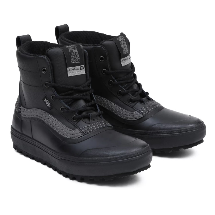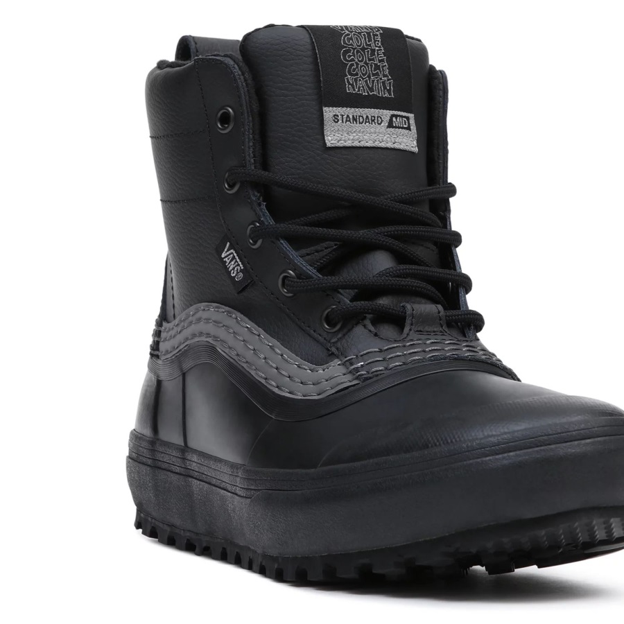 For Cole Navin, the energy of the city comes alive at night. The lights, the signs, the architecture, the people. It all comes with a refreshed sense of purpose, in contrast to their daily functions. Offering a landscape for new experiences outside of traditional resort and mountain riding, it is this unique perspective that was born in the mountains and shaped by the city that inspired Cole's take on his new collection. Reflective materials married seamlessly with MTE technology in Cole's signature take on the Standard Mid Snow MTE, a downsized version of Vans' best-selling Standard Snow MTE snow boot. With a waterproof vulcanized lower, waterproof seam-sealed construction, a Standard Snow MTE outsole featuring All-Trac™ all-terrain rubber, and a 100-gram weight insulation package, classic Vans style and day-to-day winter weather footwear have finally converged. Designed at the intersection of technical mountaineering performance and urban design, this mid top boot is made with leather and synthetic uppers. Because, let's face it, all the coolest things happen at night. Don't Sleep.