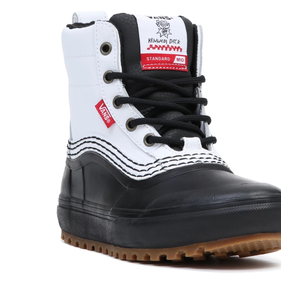 Quickly becoming known for her contributions to snowboard culture far beyond her timeless style and decimation of street spots worldwide, Kennedi Deck's love for snowboarding runs deep, complementing her milestone video parts by becoming a voice for the queer snowboard community, and inspiring many to be their true, unapologetic selves. As a part of Kennedi's pursuit for inclusivity, she has united her passions and inspired Vans Snow to continue the momentum. Elevating her interpretation of the Standard Snow MTE snow boot to take a genderless approach, this downsized version of Vans' best-selling Standard Snow MTE snow boot features a waterproof vulcanized lower, waterproof seam-sealed construction, a Standard Snow MTE outsole featuring All-Trac™ all-terrain rubber, and a 100-gram weight insulation package. Made with leather and synthetic uppers in Kennedi's signature colorway, classic Vans style and day-to-day winter weather footwear have finally converged.