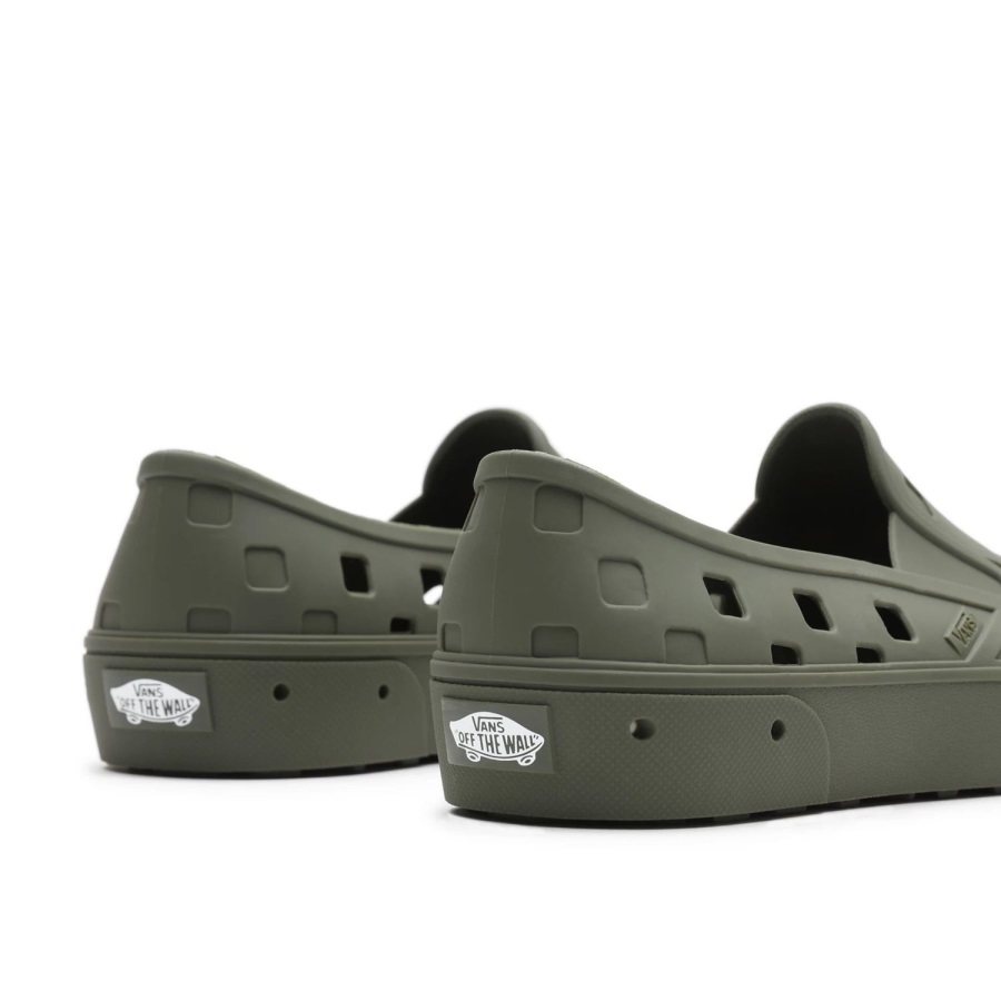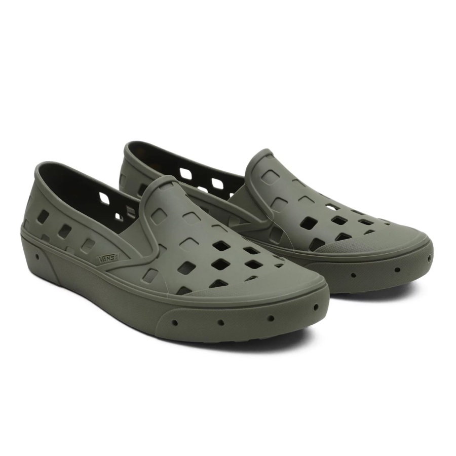 The Trek Slip-On takes the Classic Slip-On silhouette to a whole new level. The Trek Slip-On combines all the Vans DNA that you know and love with a durable, single piece injected construction, deconstructed checkerboard drainage holes for breathability, and an oversized reverse waffle sole for incredible traction in any situation. Designed to be lightweight and fully rinseable, the Trek Slip-On is easy to pack for your next adventure, so you can slip-on and on and on…