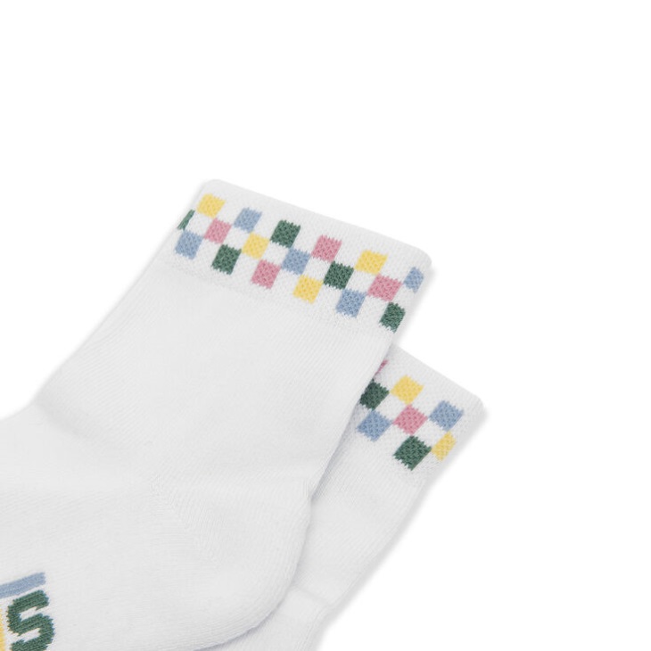 Classic checkerboard jacquard art stamps the top of the Peek-A-Check Crew Sock. Featuring a low height, this cotton blend crew sock also has wide ribbing and a Vans logo. - 79% cotton, 20% nylon, and 1% elastane - Checkerboard jacquard art - Height: 4.5 inches