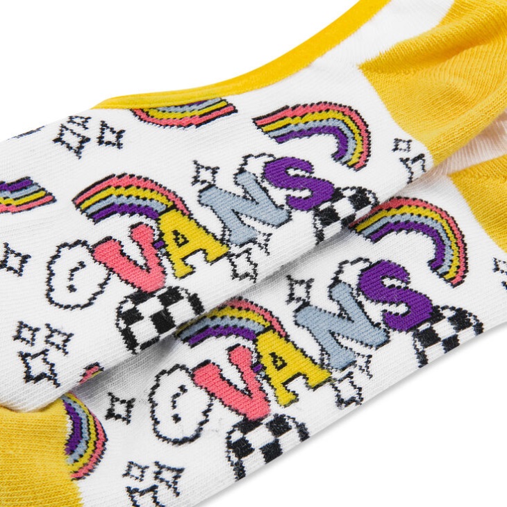 The Up In The Clouds Canoodle Socks, made of 62% cotton, 36% nylon, and 2% elastane, are low cut, no-show canoodle socks featuring a Vans logo.