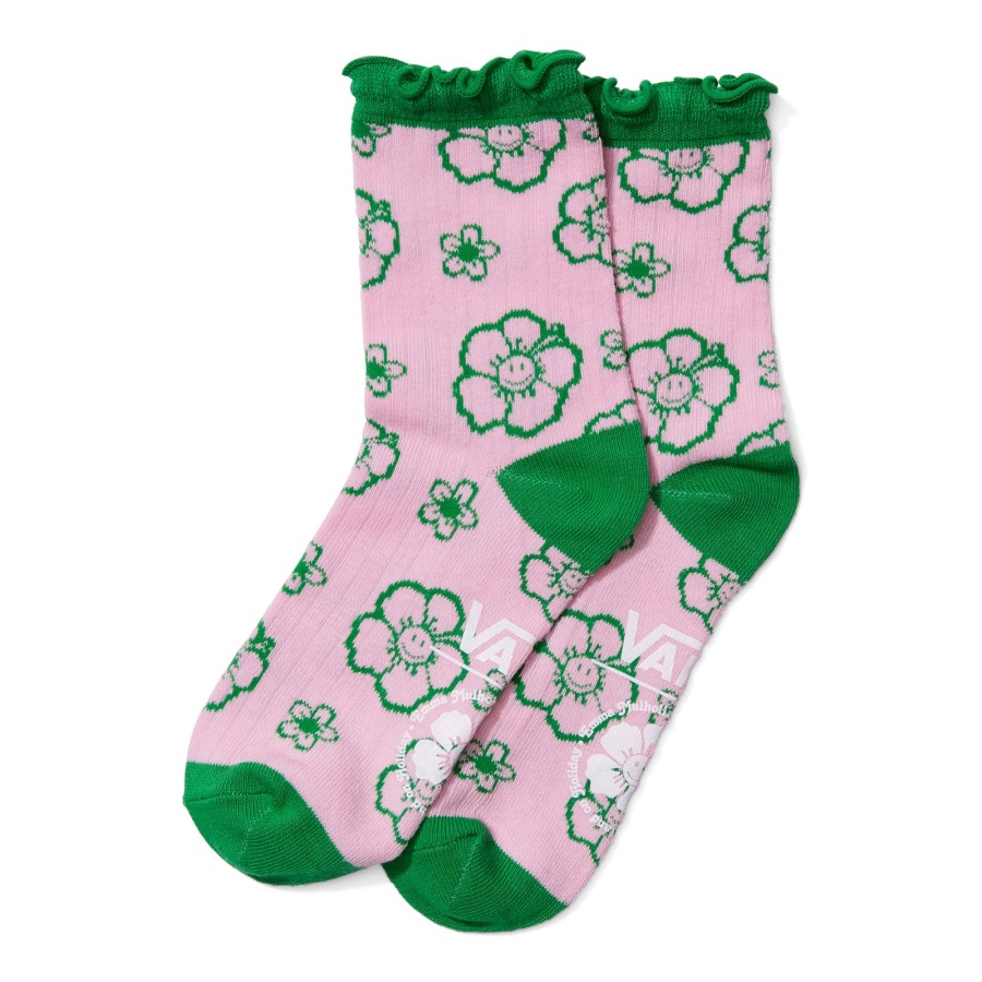 Featuring whimsical floral jacquard art, the EM On Holiday Sock keeps the vacation vibes coming. With a ruffled edge, a distinct pink and green colorway, and collaboration logos at the footbed, this elevated crew sock delivers unique style with a distinct vintage flair.