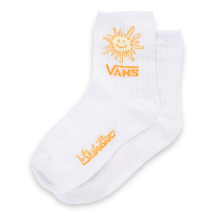 Partnering with Vans for a unique and uplifting collection, the Vans x Skateistan Sock is a lightweight ribbed crew sock with a classic look and jacquard graphics details inspired by Skateistans mission. Together, Vans, Skateistan, and YOU can make the world a better place through the power of skateboarding. - Vans x Skateistan collection - 68% cotton, 25% polyester, 3% elastodiene, 2% nylon, and 2% elastane - Lightweight ribbed crew sock - Jacquard art - Height: 7.25 inches