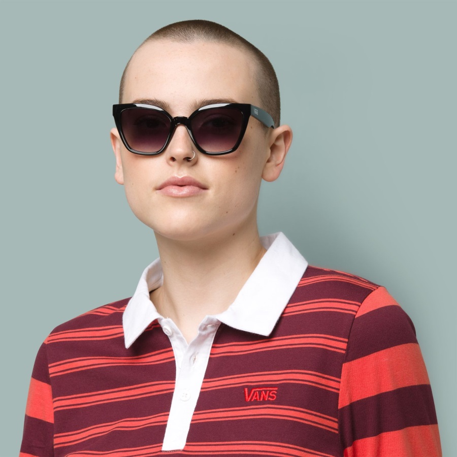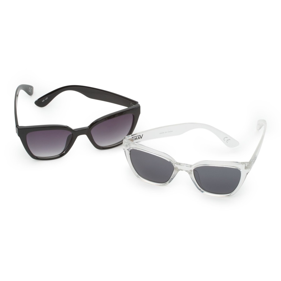 The Hip Cat Sunglasses are 100% polycarbonate fashion cat-eye sunglasses with plastic frames and various lenses.