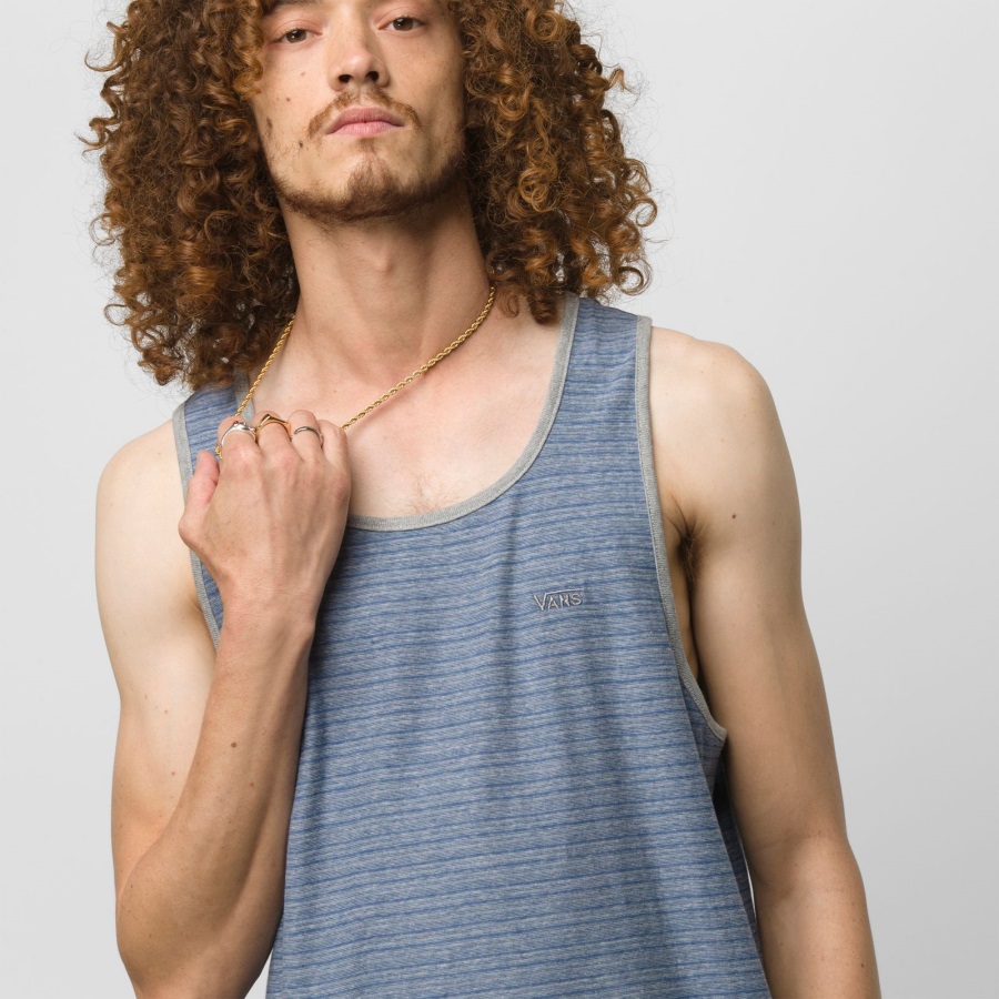An essential tank top for summer and beyond, the Balboa II Tank is made with 100% cotton jersey and features simple allover stripes for a timeless look. Zane (He/Him) is 6' 3" tall and wears a size 30/S. Zane is wearing a Vans size 32/M.