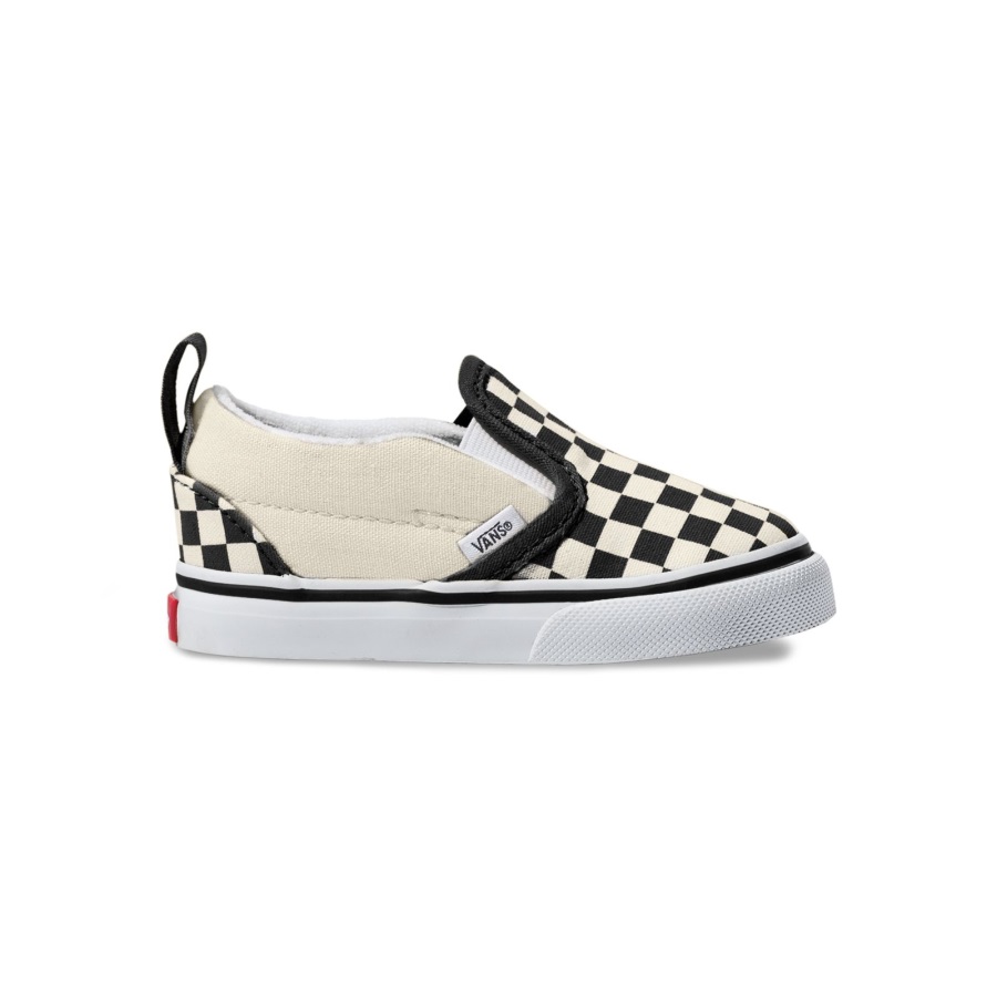 The Checkerboard Slip-On V features sturdy low profile canvas uppers with the iconic Vans checkerboard print, elastic side accents, signature rubber waffle outsoles, and heel pulls for an easy on-and-off fit.