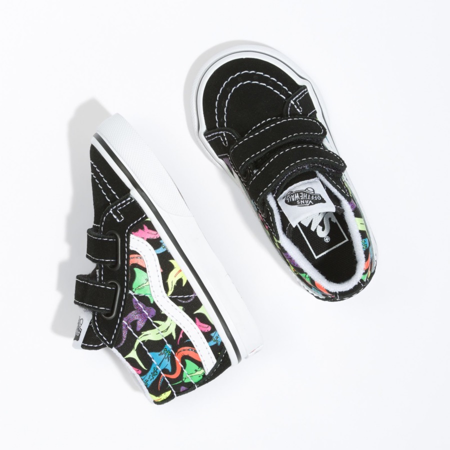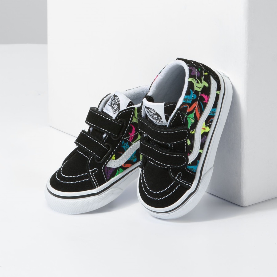 The Toddler Sk8-Mid Reissue V reimagines our legendary reissued mid top by swapping traditional laces for double hook-and-loop closures. Featuring durable suede and canvas uppers with a print that blends checkerboard and paisley designs, this sidestripe style maintains its classic appeal while providing an easy, secure fit that will keep you comfortable all day. The Toddler Sk8-Mid Reissue V also includes re-enforced toecaps, supportive padded collars, and signature rubber waffle outsoles.