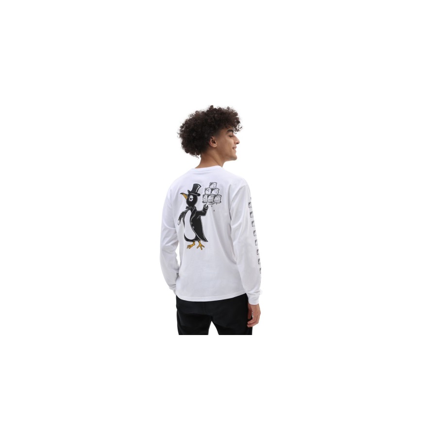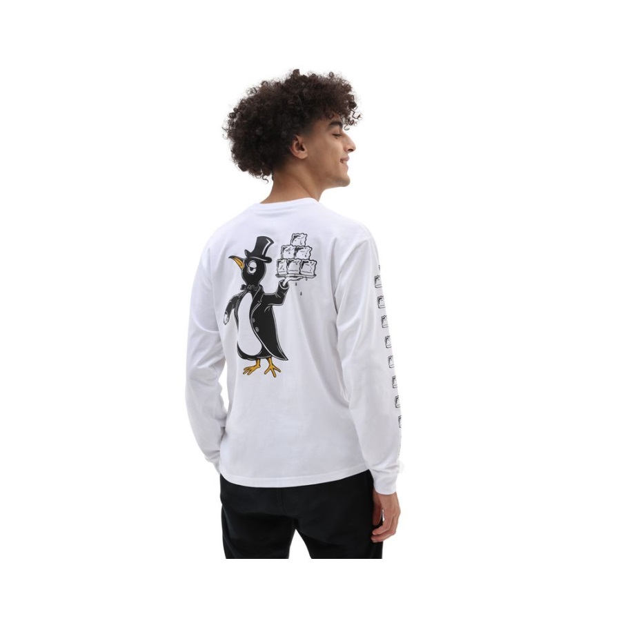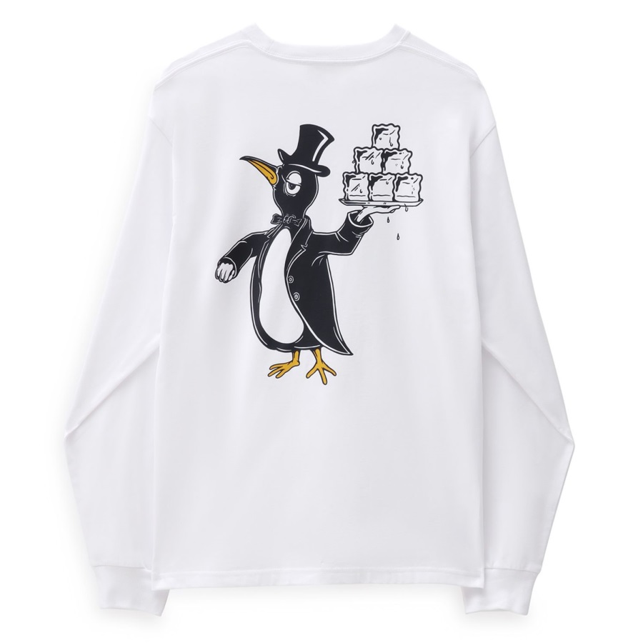 The Checkerboard Research Long Sleeve T-Shirt is a 100% carded ringspun cotton tee with a classic logo at left chest, penguin graphics at the back, and a twist on our iconic checkerboard print at the right sleeve.