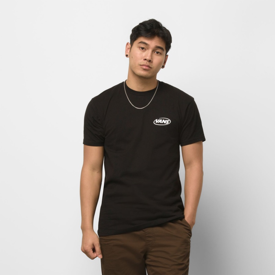 The Hi Def Commercial T-Shirt is a heavier weight 100% carded ringspun cotton tee with short sleeves and industrial logo graphics at the left chest and back. Fit type: classic. Model is 6 feet tall and wearing a size Medium.