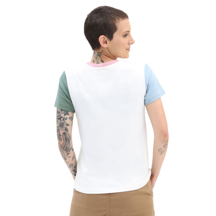 The Vans Colorblock Crew T-shirt is a colourblock crew tee with a contrast neck and contrast sleeves. It also has the Vans logo on the left chest.