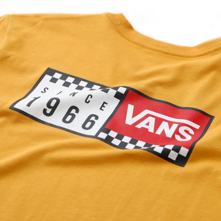 The Funbox T-shirt is a 100% Cotton womens T-shirt with a prominent boxed Vans logo design on the back. Available in Black, Mineral Yellow and White.