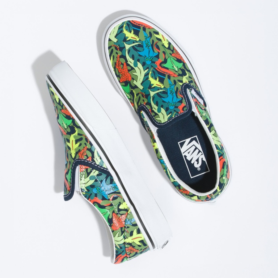 First introduced in 1977, the Vans #98—now known as the Classic Slip-On—instantly became an icon in Southern California. Fast forward to today, and the Classic Slip-On is known worldwide for its comfortable silhouette, easy wearability, and beloved design. Made with sturdy low profile canvas uppers, the Kids Classic Slip-On is an everyday essential with true "Off The Wall" style. This iconic slip-on shoe also includes supportive padded collars, elastic side accents, and signature rubber waffle outsoles.