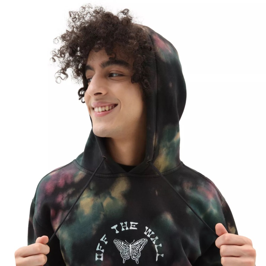 Featuring an allover tie dye offset by butterfly logo embroidery at the chest, the Butterfly Tie Dye Pullover blends deep tones with a comfortable hoodie for all day wear. This sweatshirt is made with an 80% cotton and 20% polyester fleece blend.