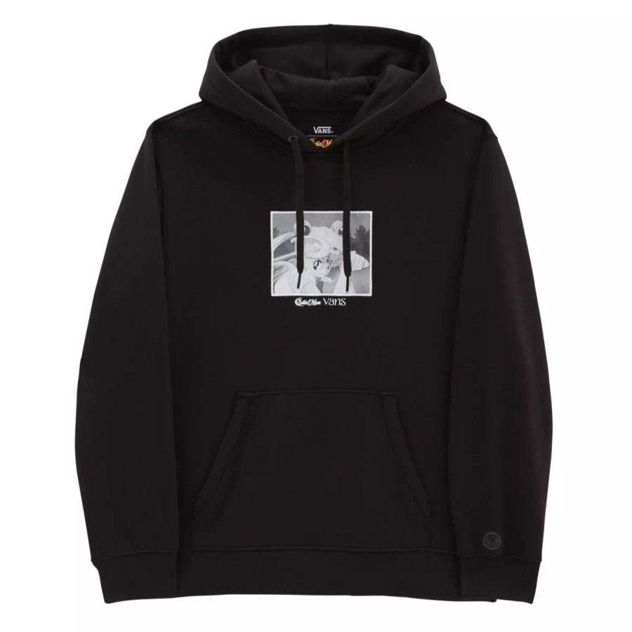 Vans and Pretty Guardian Sailor Moon have come together for a special collaboration celebrating love and justice for all. This collection of footwear and apparel invites you to team up with the Sailor Guardians and honor the popular anime.Featuring a black and white Sailor Moon screen print, the Vans X Pretty Guardian Sailor Moon Fleece Pullover Skate brings the fun of the iconic show to your everyday wardrobe with a comfortable cotton polyester blend. Embroidered and printed applique logos elevate the look of this hooded sweatshirt, while the front pouch pocket maintains the classic vibe.