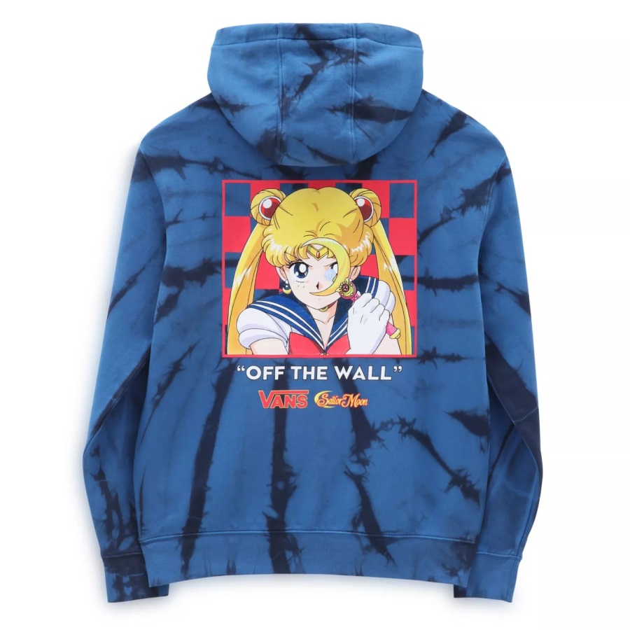 Vans and Pretty Guardian Sailor Moon have come together for a special collaboration celebrating love and justice for all. This collection of footwear and apparel invites you to team up with the Sailor Guardians and honor the popular anime.Featuring Sailor Moon artwork at the back, the Vans X Pretty Guardian Sailor Moon Fleece Tie Dye Pullover brings the fun of the iconic show to your everyday wardrobe with a cozy cotton polyester blend. An allover tie dye and chest and sleeve screen prints add to the colorful look of this pullover hooded sweatshirt.