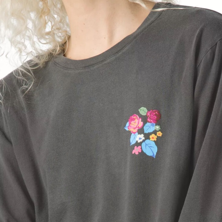 Honoring the individualism and handicraft of Needlework art, the Anaheim Needlework Wash Floral Long Sleeve Boyfriend Tee features whimsical heritage embroidery that harkens back to that time and the unique, custom expression of creativity.